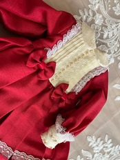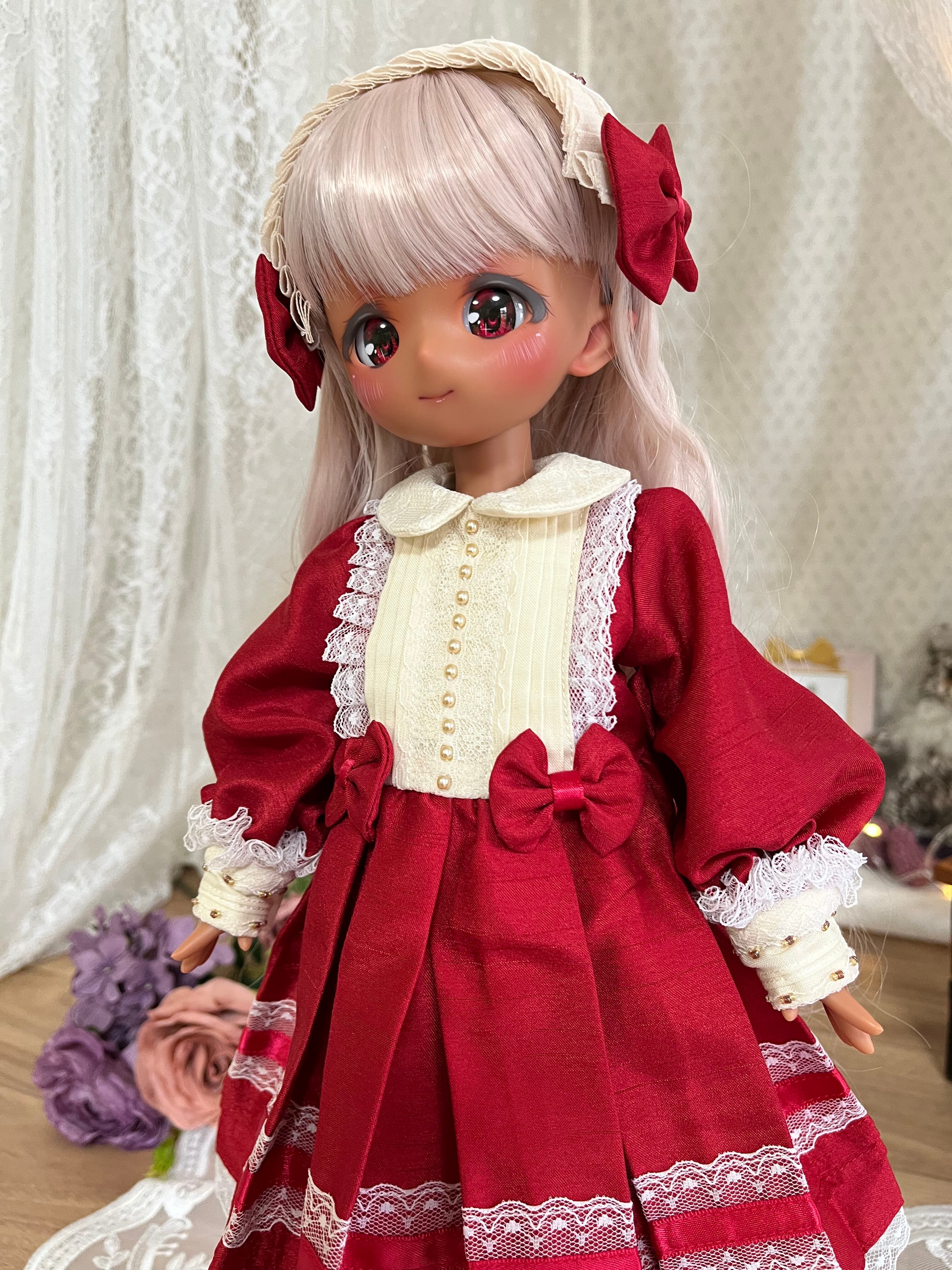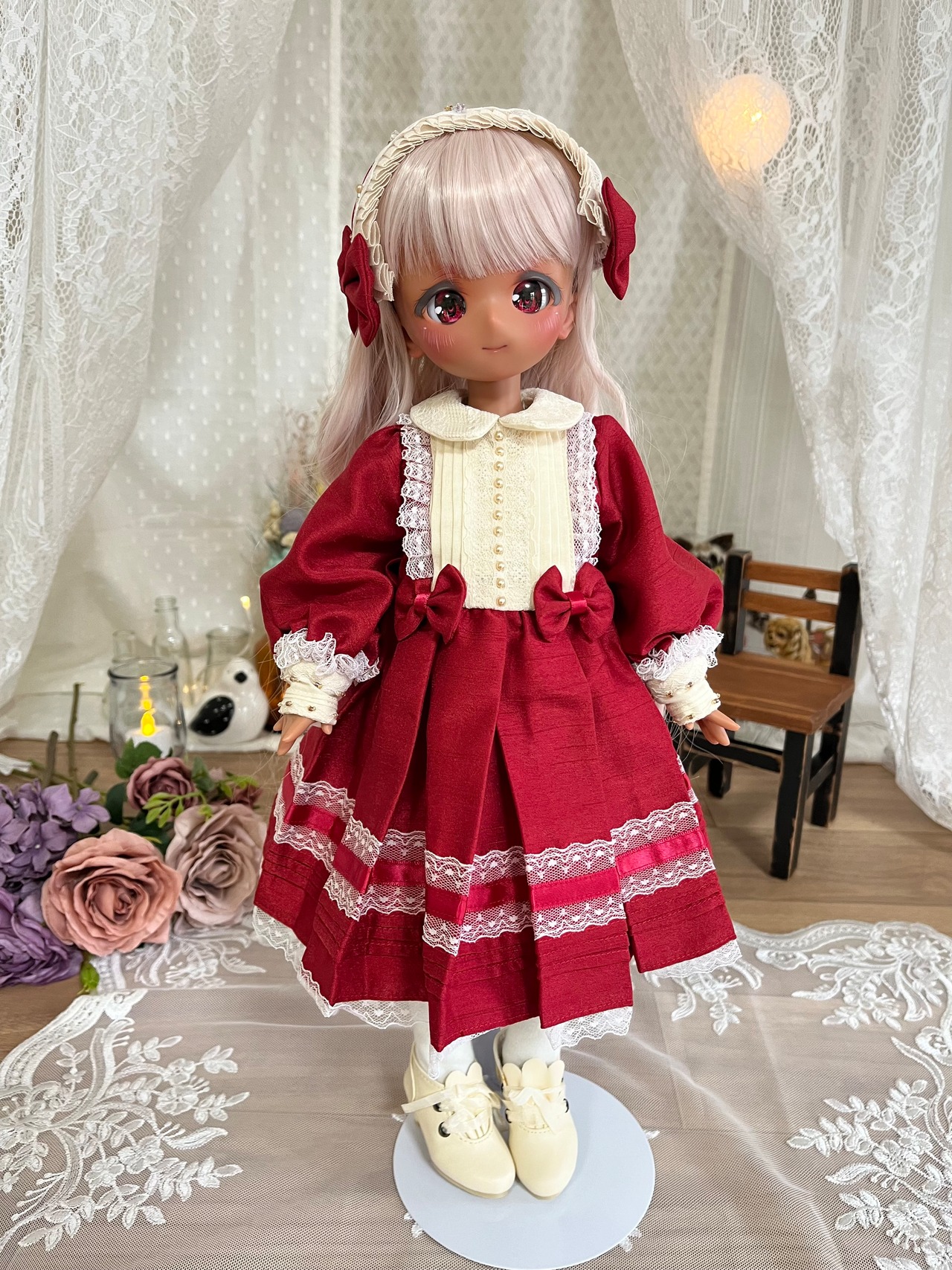 同時出品中の白とピンクのワンピースとは前身ごろと袖口、ヘッドドレスのデザインが違います。